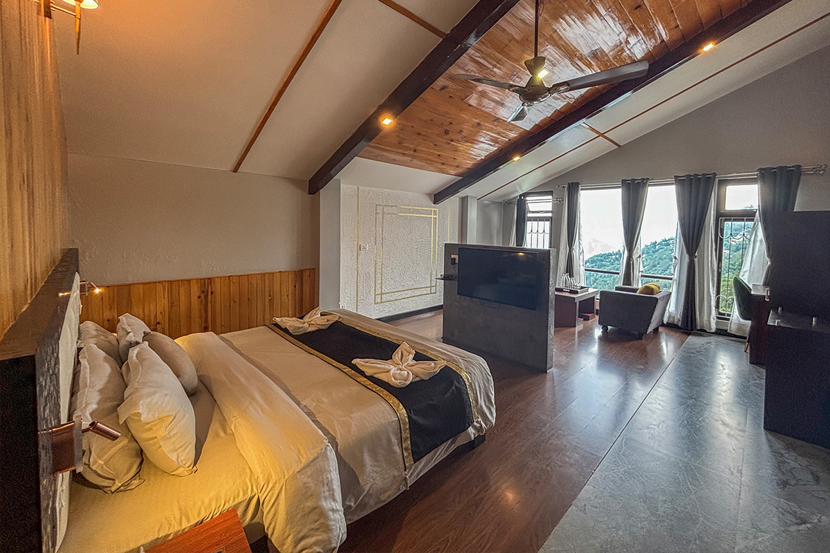 Nestled amidst the verdant hills of Kalimpong, Sood’s Himalayan Vista invites you to experience an unparalleled escape. Our resort offers a perfect blend of nature's tranquillity with modern luxury. Each of our meticulously suites has been designed to offer a premium living experience topped up by exquisite hospitality services. Our rooms also offer panoramic vistas of the majestic Himalayas, ensuring an unforgettable stay.