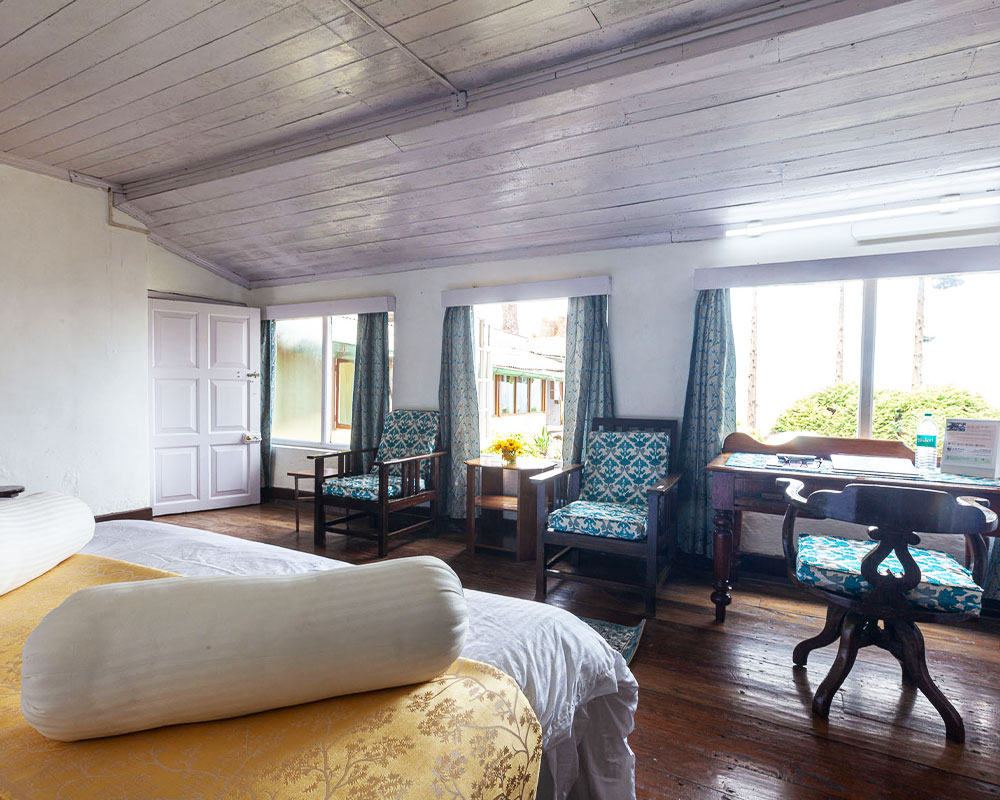 Wake up to the cinematic aura of the sun rising above the Himalayas while sipping a cup of freshly made Darjeeling Tea and rejoice in the scenic beauty of the verdant tea gardens right from your bed. Being placed on the prominent tea gardens of the region, our villa has been decorated to offer you an experience of royal living. Steeped with the elegance of burnished wood interiors and a spacious living area topped up with the essence of premium hospitality, this is the place decorated to offer you a unique staying experience amidst the beauty of the Himalayas.